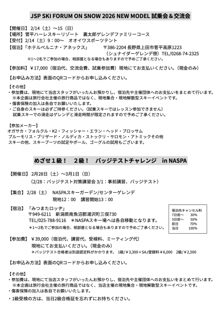 JSP SKI FORUM ON SNOW 2026 試乗会 2.14~15 @菅平ハーレスキーリゾート