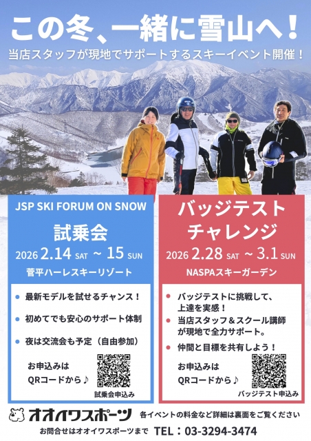 2026年2月28日(土)〜3月1日(日)、NASPAスキーガーデンにてバッジテストチャレンジを開催します!