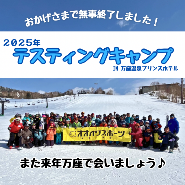 毎年恒例の26/27NEW MODEL『オオイワスポーツテスティングキャンプ』を「万座温泉スキー場」貸し切りで開催いたします。 オリンピックイヤーの今年は話題のニューモデルが各社登場し、早めのご予約が大変重要となります。 是非このキャンプでより良いマテリアルを見つけてください。